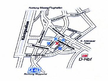 Öffentliche Verkehrsmittel:U 75, U74, U77, U76, U70, U78, U79, 754, 752, SB55, 737 Haltestelle Oststraße/Friedrich- Ebert- StraßeÖffentliche Parkhäuser:Oststr.118, Immermannhof, Charlottenstr. 50weitere Parkmöglichkeiten direkt vor dem Haus